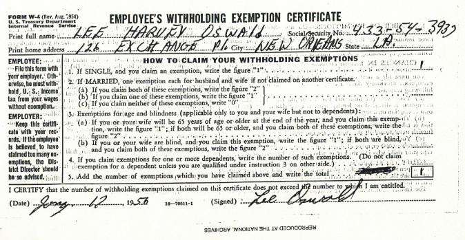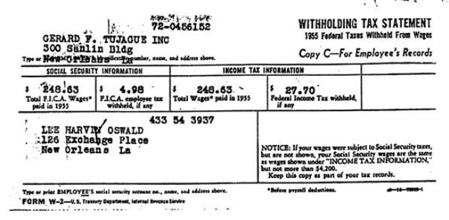 November 26, 1963, the FBI included the W-2 and W-4 forms in 455 items of evidence sent to the Dallas Police