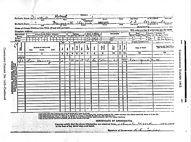 UNDERAGE STATE REGULATIONS. In the state of Louisiana all underage workers were required by law to obtain "underage work permits" from the Division of Women and Child Employment at the Louisiana Department of Labor. This agency should have received several applications from 15 year old Oswald and issued multiple work permits to him in 1956 and 1957 for work at Tujague's, J.R. Michels, and the Pfisterer Dental Lab. Work permits would have been dated prior to his working at any of these companies. But the FBI claimed this state agency had no record of a work permit issued to LEE Oswald for Tujague's, or to HARVEY Oswald for JR Michels, or the Pfisterer Dental Lab, yet the same agency issued HARVEY Oswald underage work permits for Dolly Shoe in 1955 and 1956. We now understand that if an underage work permit had been issued to 15 year old LEE Oswald for his year and a half employment at Tujague's, the work permit would have been dated in June, 1955, and conflicted with HARVEY Oswald attending Warren Easton High School three months later. If an underage work permit had been issued to HARVEY Oswald for work at JR Michels, the work permit would have been dated in early January, 1956, and conflicted with LEE Oswald working at Tujague's. If an underage work permit had been issued to HARVEY Oswald to work at Pfisterer, the work permit would have been dated in September, 1957, and conflicted with LEE Oswald serving in the Marine Corps in Japan. We know that a file existed for HARVEY Oswald because he was given an underage work permit for Dolly Shoe, but this file disappeared. We don't know if an underage work permit was given to LEE Oswald for his work at Tujague's, because there is no record of this file.