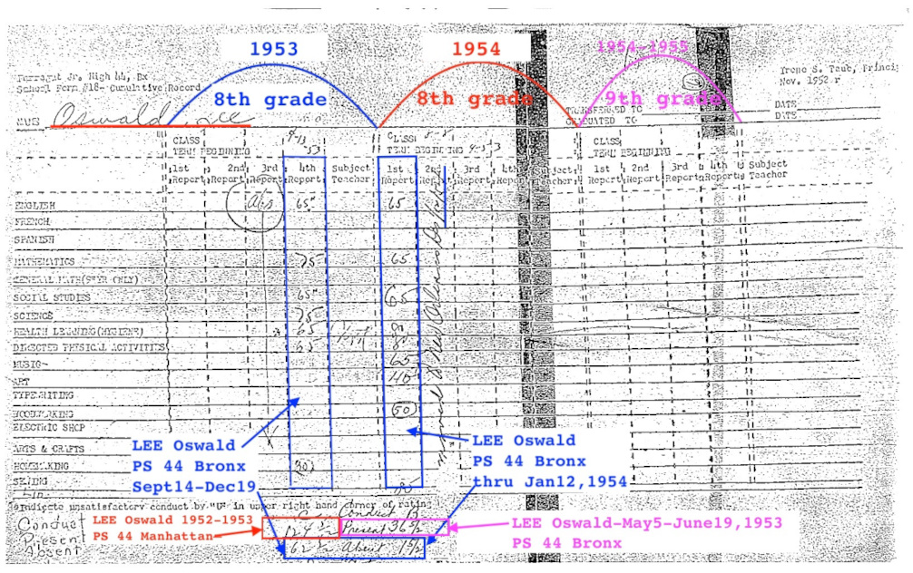 It is well worth remembering that it was LEE Oswald's original school records that were given to Judge Florence Kelley, who gave those records to the FBI. However, weeks later the FBI provided the WC with only photographs (not original records) of Oswald's attendance records. The only school records given to the WC were photographs of school records from PS 117 and PS 44 in the Bronx. There were no school records given to the Warren Commission from Manhattan. It is also worth explaining to researchers that there are five PS 44 schools in New York City: PS 44 Manhattan; PS 44 Bronx; PS 44 Staten Island; PS 44 Brooklyn; PS 44 Queens. Multiple junior high schools identified as "PS 44" in New York City… how convenient to place LEE Oswald at one PS 44 in Manhattan, while at the same time placing HARVEY Oswald at a different PS 44 in the Bronx... and how utterly confusing for researchers and historians who might try to untangle and understand Lee Harvey Oswald's attendance at "PS 44" in New York City.
