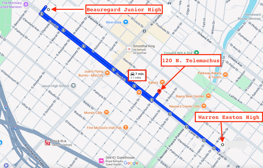 (marked "A") was just a few blocks