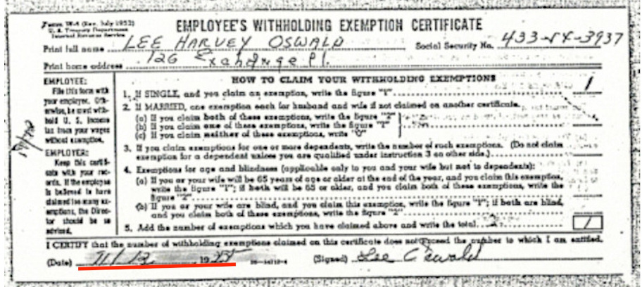 November 26, 1963, the FBI included the W-2 and W-4 forms in 455 items of evidence sent to the Dallas Police