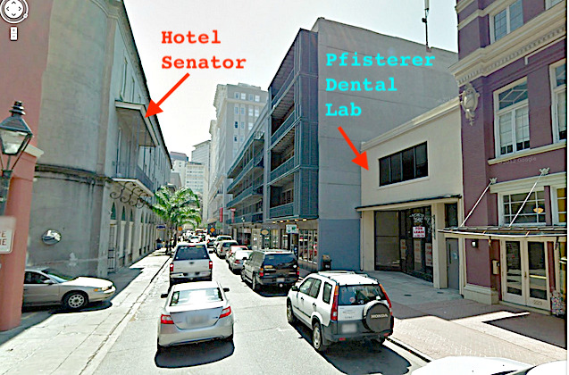 McBride said that he visited (HARVEY) Oswald at his apartment in the Hotel Senator, which was located directly across the street from the dental lab on Dauphine Street. McBride's 4 page handwritten memo was typewritten by the FBI, later given to the Warren Commission, identified as CE 1386, and printed in the Warren Commission's 26 volumes of evidence.