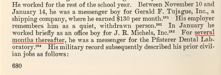 Warren Commission: Oswald worked "for several months thereafter"at the Pfisterer Dental Lab