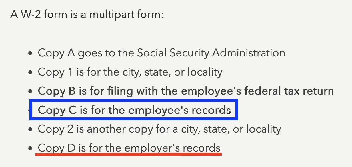 A W-2 form consists of 6 pages, including parts A, B, C, and D, and parts 1 and 2. The Tujague W-2 forms shown above are "Copy C" and were allegedly given to 15 year old LEE Oswald at the end of each year for his records. But in 1963 these seven year old 1955 and 1956 W-2 forms were not found among Oswald's possessions by the Dallas Police, and were not listed on the Dallas Police handwritten or typewritten inventory. Is it reasonable to believe that 15 year old LEE Oswald would keep these W-2 forms in his possession for the next 8 years? These W-2 forms were fabricated by the FBI and first appeared on November 26, 1963 when the FBI returned 455 items of evidence to the Dallas Police. In Dallas they were inventoried and photographed jointly by the FBI and Dallas Police, and appear in the Warren Volumes as Moore Ex. 1. In an honest investigation the FBI would have found a W-2 form "Copy D" in Oswald's file at Tujague's.